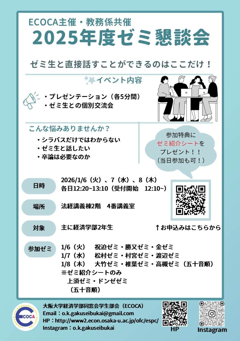 今年度もECOCA主催・教務共催でゼミ懇談会を開催します!